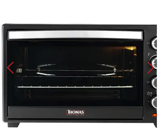 COMPONENTES. Prepara las mejores recetas para sorprender a todos con el horno eléctrico modelo TH- TH-38N de Thomas. Tiene una Tº garantizada de 250°C y cuenta con bandeja y parrilla extraíbles.