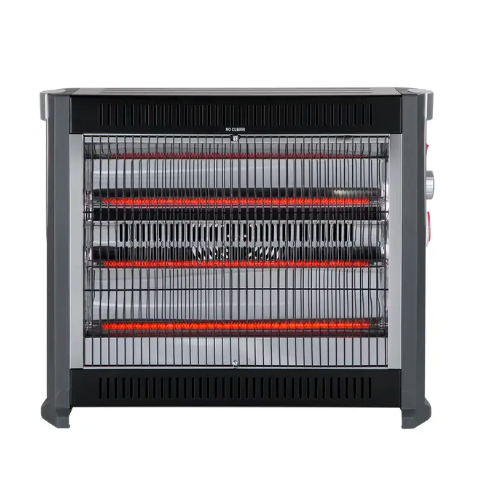 No pases frío este invierno con este radiador que posee una potencia variable de 800/1600/2000 watts y 3 niveles de temperatura. Tres tubos horizontales de fibra de carbono de larga vida que irradian calor a mayor distancia, luz de funcionamiento, termostato para ahorrar energía y timer automático de 24 hrs.